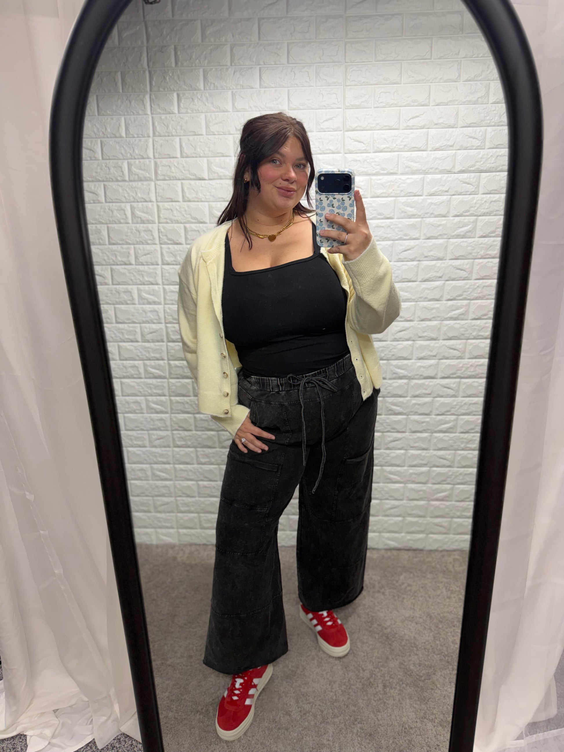 Moonstone pants + easy breezy tee + Baby Bell Cardi + your favorite shoe = church fit, date night fit, grocery store fit... you get the picture! I have been obsessed with these pants since we first got them and we are on our 4th restock of them!!